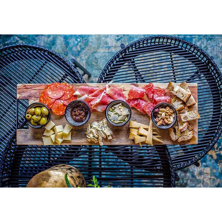 Bowls and Dishes Rose Wood rechte serveerplank met metalen handvat