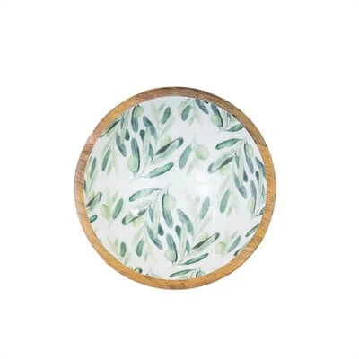 Op zoek naar een stijlvolle schaal om (zomerse) salades of andere gerechten te serveren? Dit exemplaar van By Room is er één voor op uw wensenlijst! Het item is vervaardigd uit mangohout en heeft een rond design met een diameter van 18 cm. De binnenkant is voorzien van een sticker met olive print voor een speels effect. Combineer de schaal met het bijpassende slacouvert voor een elegant geheel.