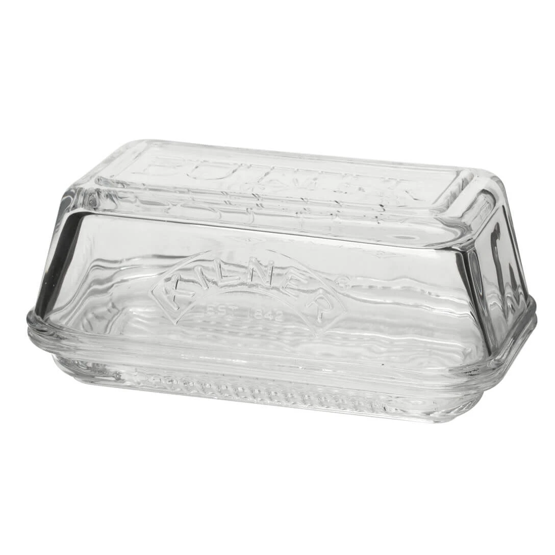 De Kilner botervloot is gemaakt van transparant glas en is 17 x 10 x 7,5 cm (l x b x h). De botervloot biedt plaats aan 250 gr roomboter of bijvoorbeeld kruidenboter. Gebruik de botervloot voor het bewaren en serveren van boter.