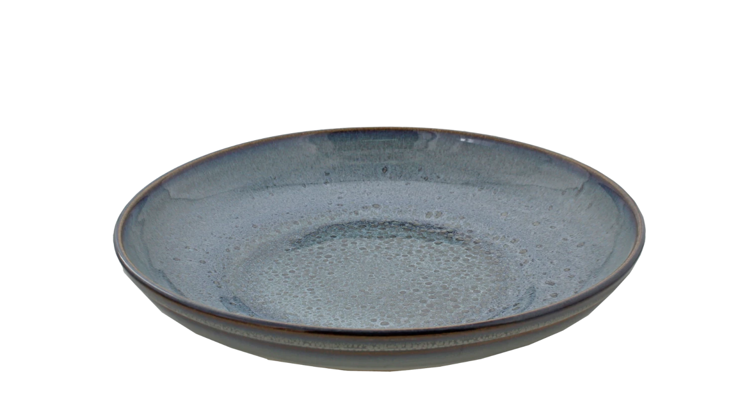 Het Oldenhof 1821 serveerbord is gemaakt van indigo blauw, geglazuurd aardewerk. Het bord heeft een diameter van 35 cm. Gebruik het bord voor het serveren van grote gerechten of hapjes.