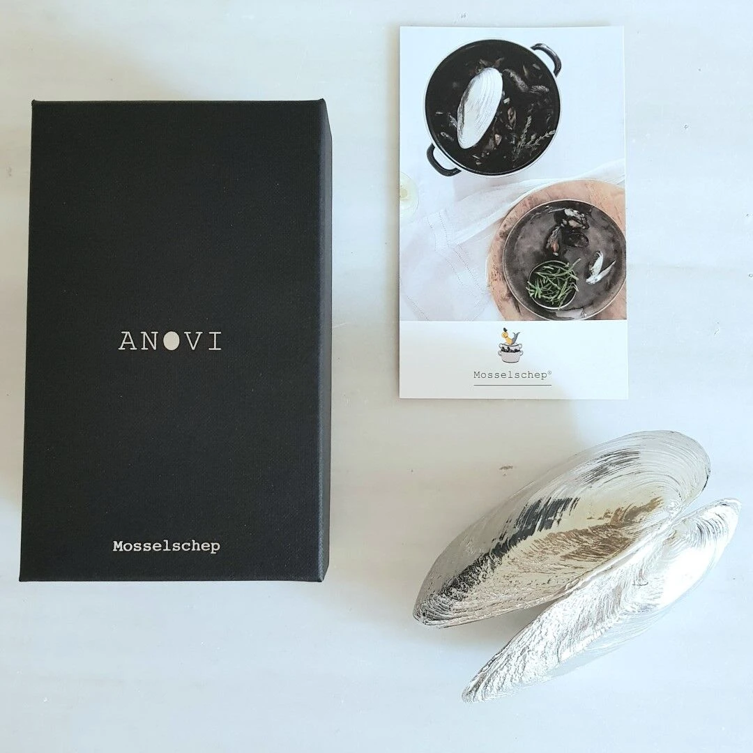 De Oldenhof Zeeuwse mosselschep is gemaakt van gepolijst zilvertin en is voorzien van een kleine veer. Hierdoor lijkt het alsof u echte mosselschelp gebruikt. De vorm van de mosselschep is gebaseerd op een zoetwatermossel. Het zuiveren tin wordt ambachtelijk gegoten in Nederland.