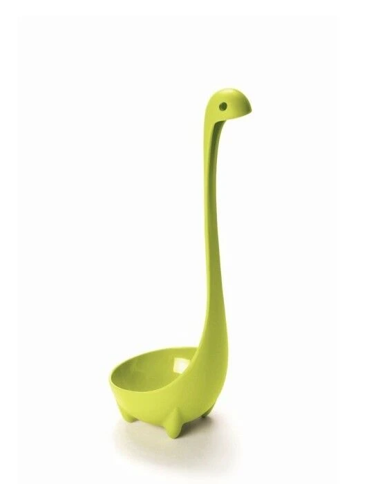 De Nessie soeplepel van Ototo is gemaakt van groen nylon. De lepel is vormgegeven als het Monster van Loch Ness, met een diepe schep. Nessie is 24,5 cm hoog, 9 cm lang en 8 cm breed. Gebruik de soeplepel om soep uit de pan te scheppen. Door de pootjes blijft Nessie rechtop staan. Â