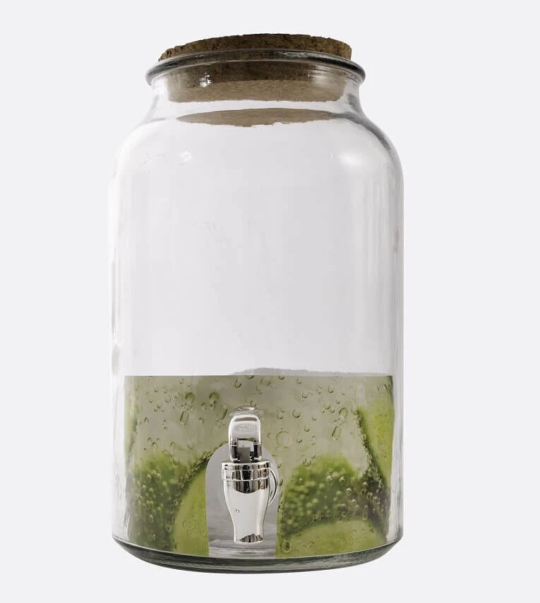 De Point-Virgule drankendispenser is vervaardigd uit transparant glas en is voorzien van een tap. Vul de dispenser met koude drank en houdt een glas onder de tap om deze te vullen met limonade.