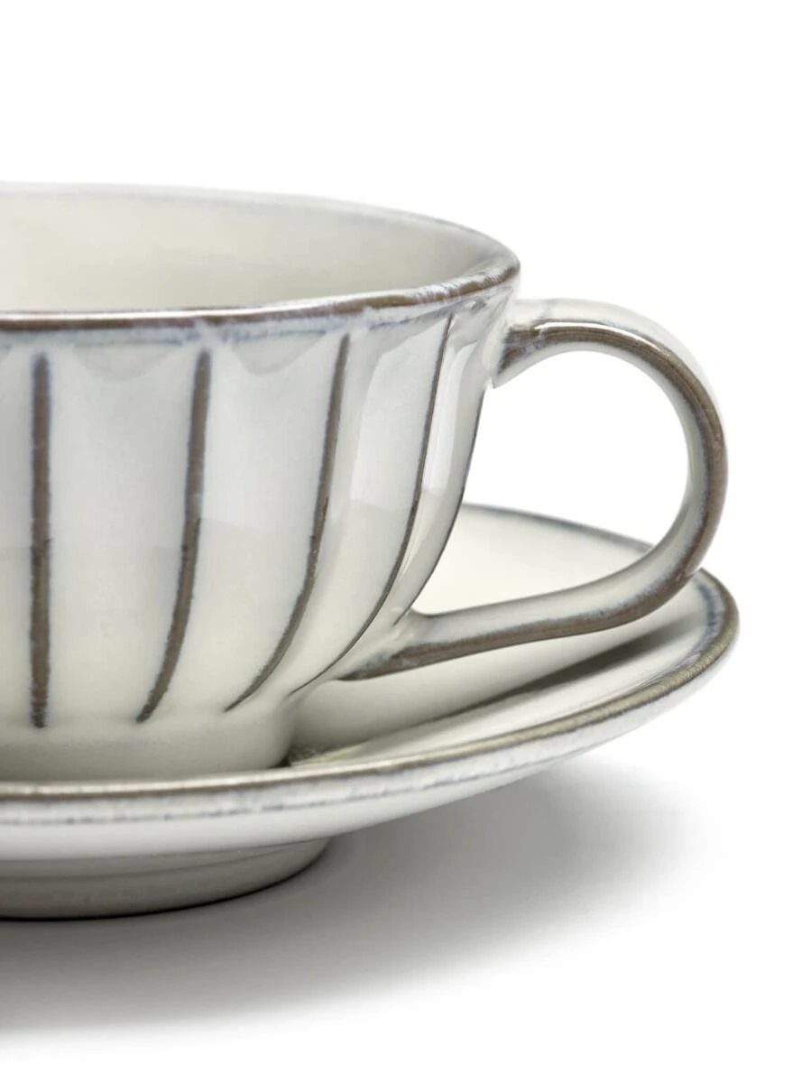 De cappuccinokop van Serax INKU heeft een inhoud van 200 ml, een diameter van 10 cm en is 5,5 cm hoog. De kop is gemaakt van steengoed (aardewerk) en is wit geglazuurd. Gebruik voor het drinken van bijvoorbeeld cappuccino.