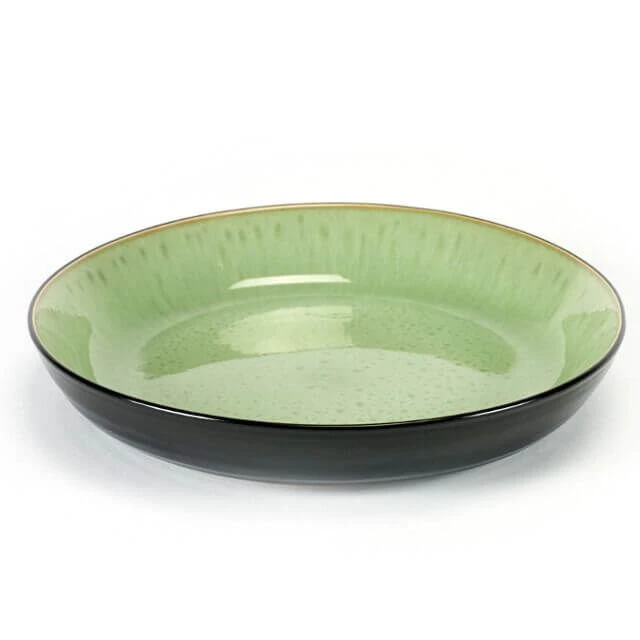 De lage Serax Pure schaal is gemaakt van lichtgrijs en zwart keramiek. De schaal heeft een diameter van 24,5 cm en is 4 cm hoog. Ontworpen door Pascale Naessens. Voor het serveren van gerechten als salades.